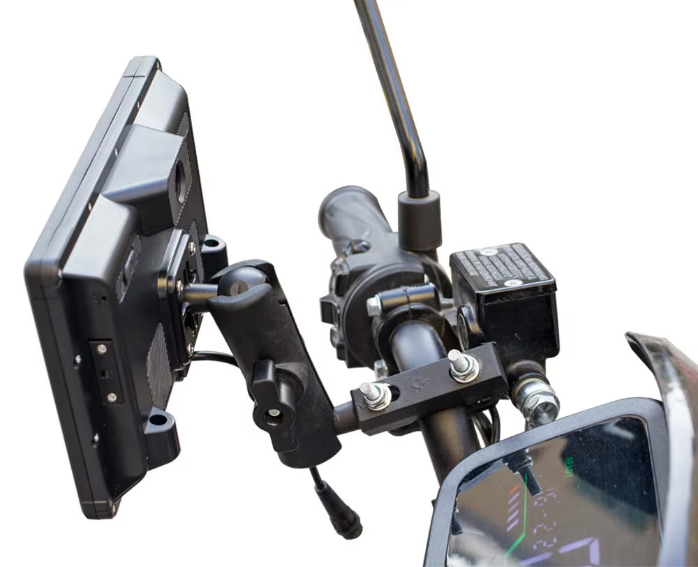 - Custom brackets allow for installation on nearly any motorcycle front handlebar system